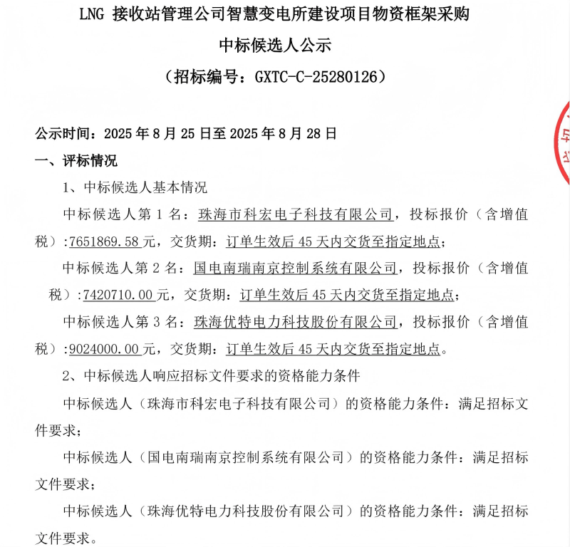 近日,在國家管網(wǎng)集團深圳天然氣有限公司--LNG接收站管理公司智慧變電所建設(shè)項目招標中,